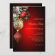 Elegante Convite de festas de Natal para Negócios Convide sua equipe a celebrar a temporada de festas com este na moda e um convite de festas de Natal moderno. Com um elegante fundo de gradiente vermelho, o design é belamente decorado com ruivos festivos e dourados, verde e um cone de pinho para um toque clássico. Personalize-o com os detalhes do evento de sua empresa para criar um convite profissional e sofisticado, perfeito para a reunião de feriados corporativos.