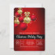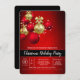 Uma mistura de frascos de Natal, vermelhos e dourados, vibrantes, pendurados em delicadas fitas de cetim e arcos é colocada contra um fundo de suco esmagado que tem modelos de branco para a sua redação festiva de feriado.