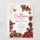Convite Red Golden Tiara Roses Butterfly Quinceañera