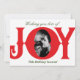Convite Red & Green White Holiday JOY Photo Christmas Card