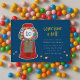 Uma máquina vermelha clássica é apenas o tratamento deste convite de festas de aniversário de criança lúdico. Apresentando doce brilhante e colorido de pastilha elástica com fundo azul arrojado na frente e um padrão divertido no verso. Personalize com os detalhes do seu próprio partido e alie-se com a suíte do cheio Gumball Party!