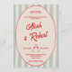 Convite Red Handwriting Blue Stripes Retro Save the Date