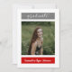 Anuncie seu novo formando em estilo ousado com este cartão moderno. O estilo do cartão de nota fixa tem espaços para três fotos, para dar a você uma oportunidade de usar suas fotos de mais velho favoritas. Inclui espaço para informações sobre cerimônias e honras. Design disponível em várias cores da escola, incluindo vermelho, laranja, amarelo, verde, azul, roxo, marrom, laranja queimado, preto e ouro. Parado com cinzas ou preto como melhor trabalhava. Você pode personalizar as cores e escolher o que for melhor para você na ferramenta design.