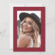 The back of the invitation features space for a photo of the graduate with a red border, making it a personal and memorable keepsake for friends and family. This version is shown in a red, black, and white color scheme (also works as maroon or crimson), but all colors—including the cap, fonts, accents, and photo layout—are fully customizable to match school colors or personal style. A modern and celebratory way to invite loved ones to honor this exciting milestone.