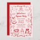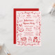 Convite Red Pink Hand Drawn Galentine's Day Pajama Party