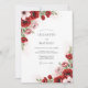 This design features a romantic watercolor arrangement of deep red and blush pink blooms clustered together. The composition highlights rich poppies and soft roses nestled among delicate sage green foliage. A white backdrop emphasizes the vibrant, painterly details, creating a timeless and sophisticated aesthetic.