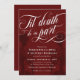 Elegante Burgundy Halloween ou convite de casamento de gótico com Til Death nos faz parte de um roteiro de caligrafia branca. Adicione o seu texto de convite a branco contra um fundo vermelho escuro com esqueletos mais escuros.