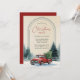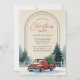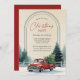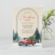 Convite Red Truck Snowy Pine Trees Rustic Christmas Party