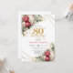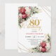 Convite Red white floral gold accent card 80th birthday