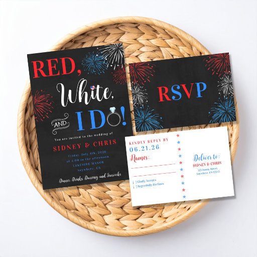 Celebrate your Independence Day “I do” with this Red, White & I Do fireworks wedding invitation. Featuring a festive yet elegant patriotic design, this July 4th wedding invitation is perfect for couples celebrating on or around the Fourth of July.