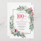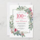 Um quadro de férias delicado e festivo contém rosas vermelhos e brancos aninhados em folhas sagradas e de eucalipto. O nome e o ano de aniversário da celebrante são escritos em um bonito vermelho. Perfeito para uma festa de aniversário de inverno. Fácil de personalizar.