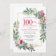 Um quadro de férias delicado e festivo contém rosas vermelhos e brancos aninhados em folhas sagradas e de eucalipto. Eles embelezam uma fina estrutura de ouro. O nome e o ano de aniversário da celebrante são escritos em um bonito vermelho. Perfeito para uma festa de aniversário de inverno. Fácil de personalizar.