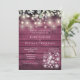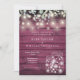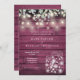 Um convite de casamento floral na moda com luzes bonito de cordas, frascos-pedras e folhas de sábio e lilás que caem sobre um fundo de madeira vermelho rusticado. Projetado por Thisnotme©