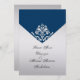 Fundo prateado com sobreposição de redemoinhos azuis marinho. Personalize com suas próprias informações. Se precisar mover o texto ou alterar o tamanho, a fonte ou a cor, clique em Personalizar. Estes são perfeitos para a noiva com orçamento limitado - as informações de RSVP estão incluídas. Se desejar um RSVP separado ou precisar de ajuda, entre em contato comigo através da minha loja.