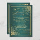 Enfeite giratório dourado em fundo gradiente azul-turquesa Convite de Aniversário de 50 anos de Casamento.