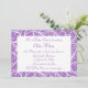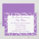 Espirais Brancas Caprichosas enfeitam este convite de chá de bebê. Mostrado aqui no papel básico, mas fica ótimo no papel de linho. (disponível em várias cores) Este convite combina com o Envelope de Pontos Roxos.