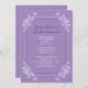 Lavanda Vintage com Redemoinhos Brancos Ornamentais e Acentos Roxos Convites de Depois do Casamento / Convites de Pós-Casamento. São perfeitos para quando você teve uma cerimônia íntima, mas quer que amigos e familiares compartilhem da sua felicidade com uma festa mais tarde ou você pode usá-los para o seu casamento futuro. Personalize com suas próprias informações. Se precisar mover o texto ou alterar o tamanho, a fonte ou a cor, clique em Personalizar. Posso colocar este design em outros produtos de casamento - RSVPs, cartões de mesa, cartões de lugar, etc. Basta entrar em contato comigo através da minha loja - tempo de entrega de 24 a 36 horas nos pedidos.