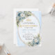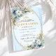 Ideal for classic, modern, garden, or elegant Quinceañera themes, this invitation combines delicate blue hues with warm gold details to achieve a look that feels both sophisticated and youthful. The greenery and eucalyptus bring freshness and balance, while the gold accents add just the right amount of sparkle for a meaningful 15th birthday celebration. Whether you are planning a formal Quinceañera, a traditional fiesta, or an intimate family gathering, this invitation sets a beautiful and memorable tone.
