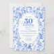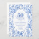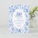 Convite Refined Royal Blue Toile de Jouy Floral 50 Birthd