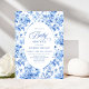 Convite Refined Royal Blue Toile de Jouy Floral Baby Showe