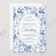 Make a refined first impression with this wedding invitation featuring classic French toile de jouy roses in elegant shades of navy blue, royal blue, dusty blue, and deep blue. Inspired by timeless European floral design, this invitation blends traditional sophistication with modern elegance, perfect for a classic, romantic, or formal wedding celebration.