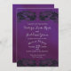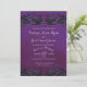 Lace floral preto como design e convite de casamento roxo profundo ousado e elegante com letra de estilo manuscrito, texto em prata.