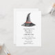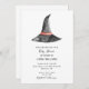 Simples e elegante convite de chá de fraldas unilateral para o tema do Dia das Bruxas. O verso inclui informações de registro de presentes com código QR. Um convite para chás de fraldas ao estilo moderno e minimalista. Possui o chapéu de bruxa de aquarela pintada manualmente.