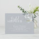 Este design apresenta azul empoeirado de folhagem floral com aquarela, com um registro de presente de código QR online, registro de loja de URLs do site, fonte moderna de script de caligrafia elegante, um rosa botânico elegante, fonte moderna e simples de tipografia minimalista, estilo de primavera de verão no outono, romântico simplista de elegância flexível, convites de chá de panela florais, um chá de panela com registro de presentes