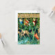 Cartão com a tapeçaria de William Morris Verprocedure com Deer e Shields (1891-1894). Uma cena de bebendo de veados de uma piscina de água e comendo de folhas de árvores em uma floresta verde. Acima deles pendura os escudos dos Cavaleiros da Mesa redonda. Um presente magnífico para os entusiastas de Arthuriana e colecionadores vitorianos de arte.