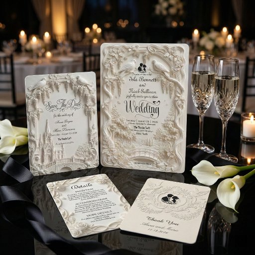 Defina o tom para sua cerimônia formal com este design monocromático atemporal. Com um efeito escultural impresso que evoca luxo e romance clássicos.