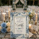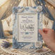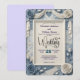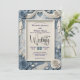 Eleve o seu casamento romântico de primavera com este design floral em relevo falso azul poeirado, apresentando ilusões impressionantes de papel artesanal e tipografia elegante.