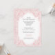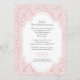 Um convite elegante com um fundo rosa suave e uma sobreposição de padrão intrincado branco. Muito adequado para qualquer celebração religiosa de uma menina.<br/><br/>O cartão é fácil de personalizar com sua redação, fonte, cor da fonte e escolha de seis tipos de papel.<br/><br/>Não é exatamente o que você está procurando? Todos os nossos produtos podem ser personalizados para atender às suas necessidades sem nenhum custo adicional.<br/><br/>Basta entrar em contato conosco em askpixieprints@aol.com.<br/><br/>Produtos coordenados disponíveis: