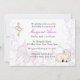 Convite cristão com o cordeiro no fundo roxo pálido floral e da borboleta e cruz com dois corações. Este convite é apropriado para o primeiros comunhão santamente, confirmações, baptismos ou batismo. Pode facilmente ser personalizado com os detalhes de seu evento. Os convites vêm completo com os envelopes.