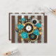 Relógio antigo e patenteado, adornado com joias, mãos de ouro e algarismos latinos com rosa de turquesa sobre fundo castanho e listrado. Estilo Steampunk.