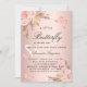 Para um chá de fraldas moderno estilo boho. Um fundo de gradiente rosa ouro. Decorados com ouro rosa e flores, rosas, erva-pampas e borboletas cor-de-rosa. Personalize e adicione um nome e detalhes da parte.