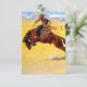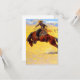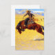 Cartão com pintura a óleo de Frederic Remington, Manhã Fria na Faixa (1904). Um vaqueiro anda a cavalo marrom e ambunicioso. Um presente de excelente para amantes de cavalos e para o Velho Oeste.