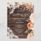 Envie aos seus convidados um lindo convite de casamento graças a esta madeira e renda com flores bege e pêssego com luzes. Ótimo para casamentos rústicos, campestres e de quintal.