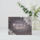 Elegante renda vintage branca e brilho rosa glitter em madeira rústica escura "você seria minha madrinha" cartões. Ótimo para casamento rústico, casamento em celeiro, casamento country e casamento vintage.
