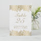 Tons dourados elegantes design de número de mesa de casamento floral paisley vintage. Fundo de damasco paisley branco para aparência de bolsa, com tons dourados e texto personalizável. Se precisar de ajuda para personalizar este produto ou qualquer um dos meus produtos, por favor envie-me um email. Este design faz parte do conjunto de casamento.