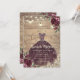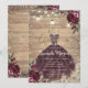 Tiara dourada, luzes de corda, vestido burgundy, rosas, renda rústica e diamantes em fundo de textura de madeira. Convite lindo que pode ser personalizado com seu nome. Selecione o botão "personalizar" para alterar o estilo, cor e tamanho da fonte.