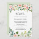 Este convite à renovação floral elegante é perfeito para uma cerimônia de renovação e celebração simples. A design apresenta rosas brancos, cor-de-rosa e pincéis pintados à mão e um toque de verde, adoráveis quadros geométricos de ouro, inspiradora beleza artística.