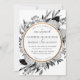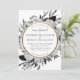 Flores de aquarelas brancas e pretas de hydrangeas, eucalipto e peões com borda circular de ouro falso (facultativo). Todo texto é personalizável, assim como o padrão de backer. Também disponível como convite de casamento.