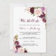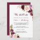 Este convite de renovação floral de burgundy verde é perfeito para uma cerimônia de renovação e celebração de votos rusticados. A design apresenta buquês de flores elegantes, verdes, esbranquiçados, roxos, vermelhos e burgosos desenhados à mão, inspiradoras belezas naturais.