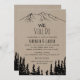 Esta rústica carta de convite à renovação de votos de montanha russa é perfeita para uma cerimônia de renovação e celebração de votos de terras arborizadas. A design da natureza inspirou a silhueta de uma floresta de pinheiros e montanhas em papel kraft falso. Por favor, observe que isto não está impresso em papel kraft real. É um gráfico de alta qualidade feito para parecer papel kraft.