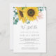 Este convite de renovação de votos We Still Do com girassol rústico é perfeito para uma cerimônia e celebração de renovação de votos no estilo country. O design floral boêmio apresenta girassóis amarelos, flores rosa bege e folhagem de eucalipto verde caçador em aquarela com um toque moderno e elegante.