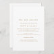 Este convite de renovação de votos We Do Again com tipografia dourada é perfeito para uma cerimônia e celebração de renovação de votos moderna. O design simples apresenta tipografia clássica minimalista dourada e branca com um toque rústico boho. Personalizável em qualquer cor. Mantenha o design minimalista e elegante, como está, ou personalize-o adicionando seus próprios gráficos e ilustrações.