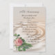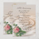 Convite de festa de aniversário de 25 anos de casamento ou renovação de votos rosa vintage em fundo de aparência de cetim