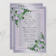renovação de votos de aniversário de 25 anos de casamento Fundo lavanda com cantos florais e moldura de fita de gingham e renda.