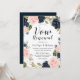 Convite de Renovação de Votos de Casamento em Aquarela Azul Marinho com Rubor