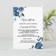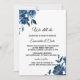 Este moderno convite à renovação da promessa floral azul é perfeito para uma cerimônia de renovação e celebração simples. Este elegante design floral pintado à mão apresenta flores azuis, azuis escuras e indigo graciosas com folhas verdes, representando majestosa beleza natural.